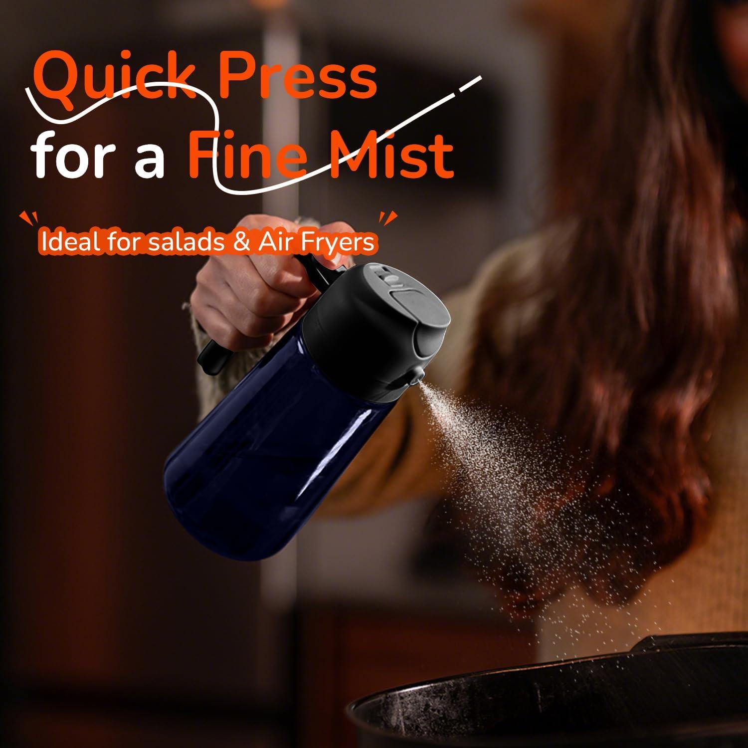 Innovative Spray Nozzle Design: Offers precise control with a fine mist from quick presses and a steady stream from slow presses. A reliable cooking oil sprayer for all your cooking needs