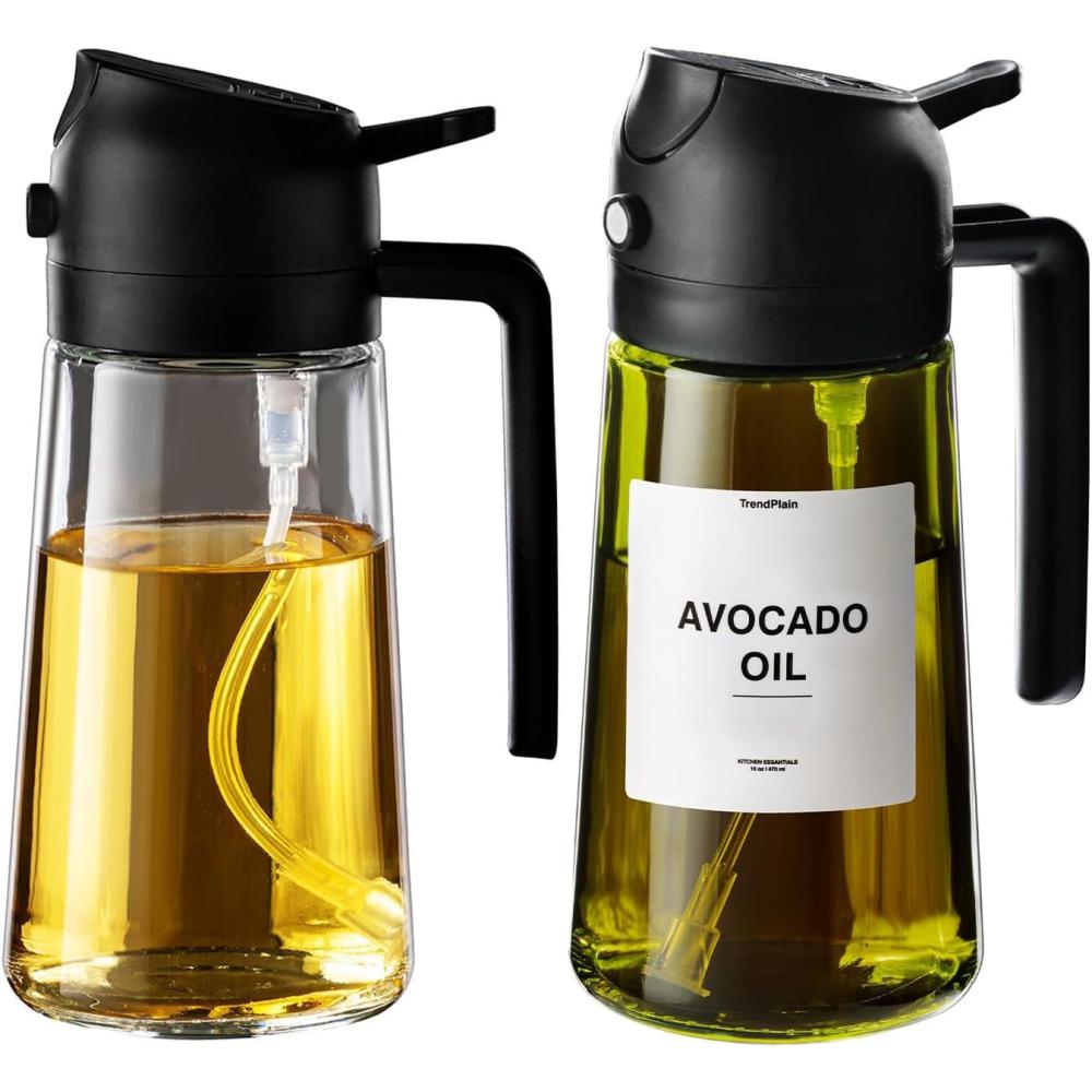 Innovative Spray Nozzle Design: Experience precision with our unique spray nozzle, delivering a wide-angle, fine mist with quick presses and a steady stream with slow presses. This precise design ensures consistent coverage and control over your oil usage.